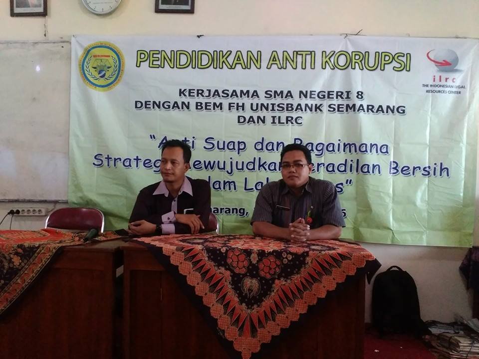 “Acara ini merupakan kegiatan keduakalinya setelah sebelumnya juga dilakukan di SMA Negeri 8 Semarang. Tema pendidikan anti korupsi adalah persoalan mafia peradilan, khususnya dalam bidang pelangggaran lalu lintas” ujar Abdullah Abbas, koordinator program pendidikan anti korupsi.
